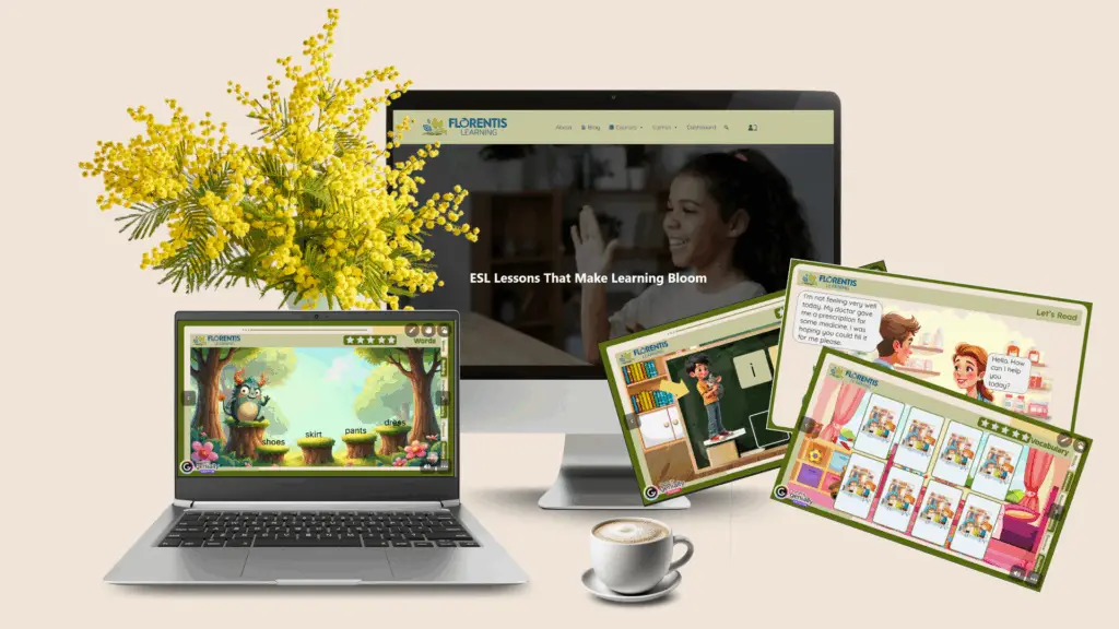 At Florentis Learning, we design our ESL lessons with TPR in mind from the very first unit. Each lesson—whether it’s about jungle animals, food, or weather—includes gestures, songs, and interactive activities that help students connect language to action. When students move, they remember more and gain confidence faster.